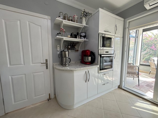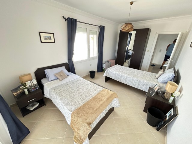 This beautiful well presented villa is located in Akbuk, it is detached on it's own plot with four bedrooms and four bathrooms. It is just 1.5km to Akbuk town centre, where there are supermarkets, cafe's restaurants, harbour where there are daily boat trips during the summer months. The main road in the centre of Akbuk has a local regular bus service that takes you to Didim and Altinkum. There are many bays and beaches located along Akbuk bay. This villa is in a quiet location, surrounded by olive trees. As you enter the grounds there is car parking with a car port, a lovely shaded area where you can sit and enjoy a coffee. There are garden areas all round the villa. To the rear of the property there is a spacious area for sunbathing along with a private pool. As you enter the property there is a hallway leading to a full bathroom, a storage cupboard, separate well equipped kitchen with integrated appliances, there is a breakfast room (sun room) off the kitchen. You then come to a very spacious bright livingroom with access to a balcony that has sea views. To the first floor there is a family bathroom, three spacious bedrooms, two have access to balconies, the master bedroom to this floor also has an en-suite bathroom, all bedrooms are bright and airey. To the top floor there is a further bedroom with en-suite bathroom, there is also access to a terrace with sea views. To this floor there is also a spacious storage room and storage cupboard to the terrace. This is a truly lovely villa. There are roller shutters to windows and doors, to the front door there is a metal security grille. and also benefits from having solar panels on the roof for hot water.