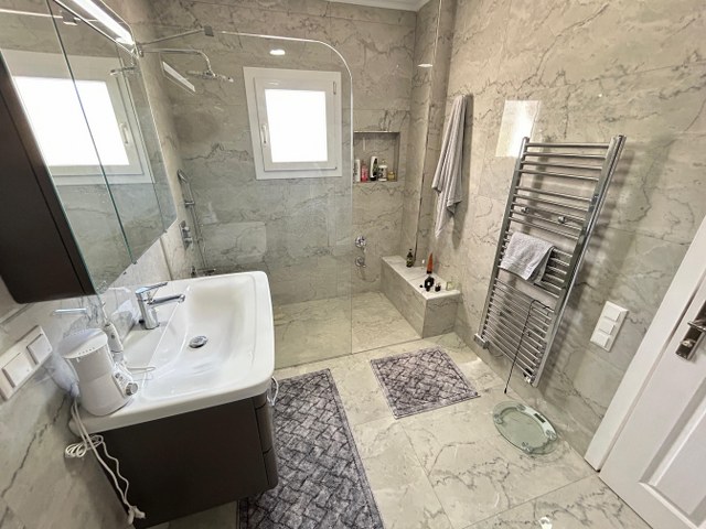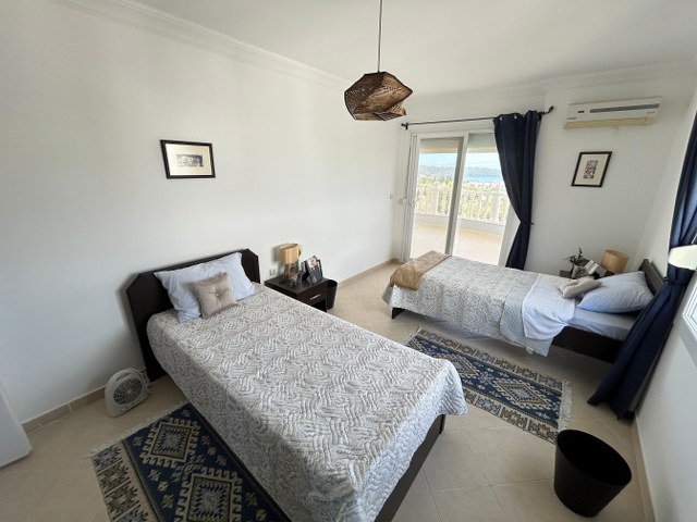 This beautiful well presented villa is located in Akbuk, it is detached on it's own plot with four bedrooms and four bathrooms. It is just 1.5km to Akbuk town centre, where there are supermarkets, cafe's restaurants, harbour where there are daily boat trips during the summer months. The main road in the centre of Akbuk has a local regular bus service that takes you to Didim and Altinkum. There are many bays and beaches located along Akbuk bay. This villa is in a quiet location, surrounded by olive trees. As you enter the grounds there is car parking with a car port, a lovely shaded area where you can sit and enjoy a coffee. There are garden areas all round the villa. To the rear of the property there is a spacious area for sunbathing along with a private pool. As you enter the property there is a hallway leading to a full bathroom, a storage cupboard, separate well equipped kitchen with integrated appliances, there is a breakfast room (sun room) off the kitchen. You then come to a very spacious bright livingroom with access to a balcony that has sea views. To the first floor there is a family bathroom, three spacious bedrooms, two have access to balconies, the master bedroom to this floor also has an en-suite bathroom, all bedrooms are bright and airey. To the top floor there is a further bedroom with en-suite bathroom, there is also access to a terrace with sea views. To this floor there is also a spacious storage room and storage cupboard to the terrace. This is a truly lovely villa. There are roller shutters to windows and doors, to the front door there is a metal security grille. and also benefits from having solar panels on the roof for hot water.